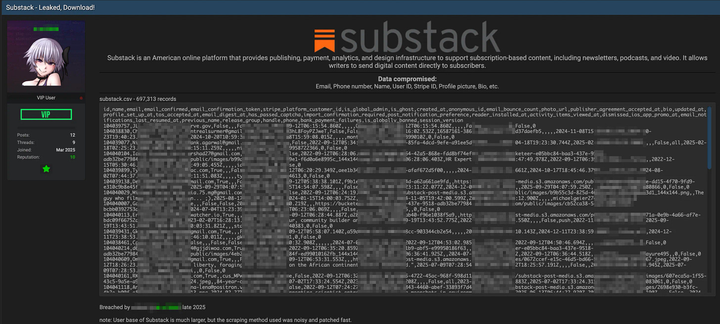 Substack has confirmed a data breach affecting user data.